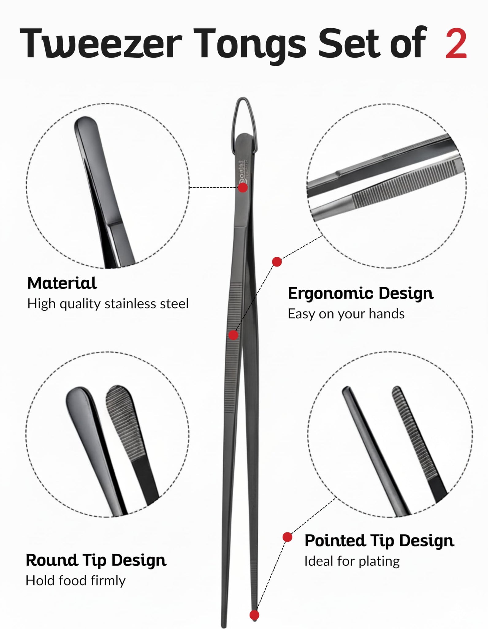 Upgrade your kitchen and cooking precision with the Boxiki Kitchen Tweezer Tongs Set of 2, designed for professional chefs, bakers, and home cooking enthusiasts. Crafted from durable stainless steel, these long chef tweezers are perfect for plating, pasta, grilling, baking, cake decorating, and delicate food handling. The ergonomic non-slip handles provide comfort and control, keeping your hands safe from heat while allowing precise movements. Use them for pasta, vegetables, steak, desserts, or even delicate garnishes. Their versatility makes them ideal for indoor cooking, professional kitchens, outdoor BBQs, and camping culinary use. Dishwasher safe and resistant to rust, warping, and staining, these tweezers maintain hygienic standards and are easy to clean. Compact, durable, and reliable, this 2-piece set of cooking tweezers and tongs enhances your kitchen toolkit, complements other tools like spatula tongs, and ensures professional-level precision in food handling and plating.